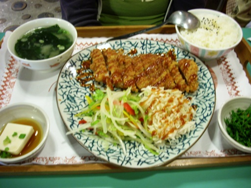 有一碟小菜跟一碟豆腐以及蒸蛋一碗,豬排的醬汁很棒,在配上洋蔥跟高麗菜絲會更好吃