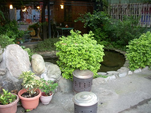 靠近窗邊的位置要訂位才能坐阿,窗外有養鯉魚以及小庭園造景。