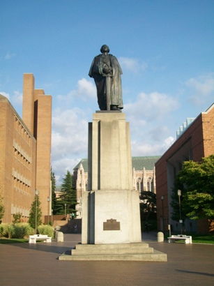 華盛頓大學是沒有門的,但是一般而言會把雕像這當作大門