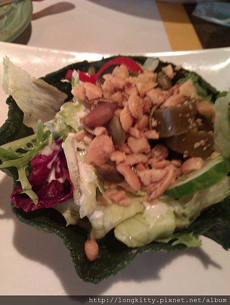 點了一個特殊的塔可沙拉,吃完的話下面就是所謂的玉米餅可以一起吃掉喔