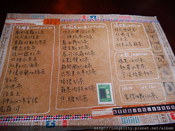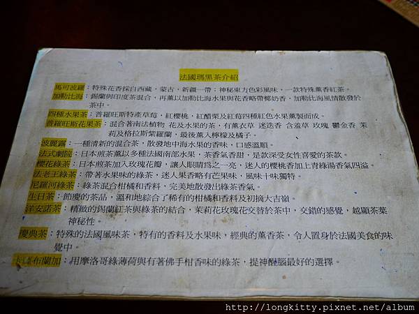 菜單背面是飲料的部分,另外還細心附了一張各種茶的介紹。
