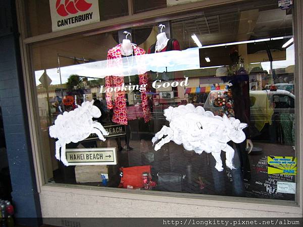 在每個商店的玻璃櫥櫃上畫滿了羊,一家店接著一家。