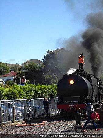 經過火車站的時候看到一輛火車正慢慢入站,原來是蒸汽火車,
