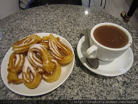 我從我同學那得到了一家churros(西班牙油條甜點)的百年老店