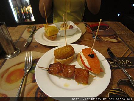 只好吃點tapas,基本上tapas是一盤盤的下酒菜,每道菜大概都要